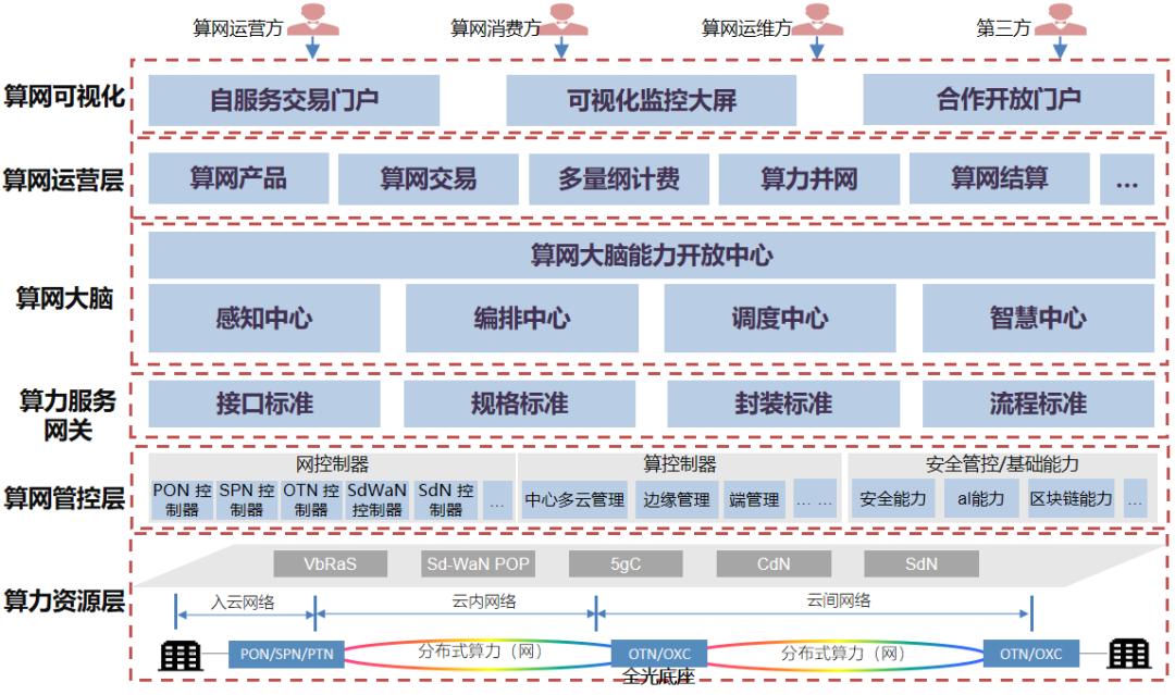 算網(wǎng)管控層:多云管理與控制、邊緣云控制、算力標(biāo)準(zhǔn)化與算力度量,SDN控制器。