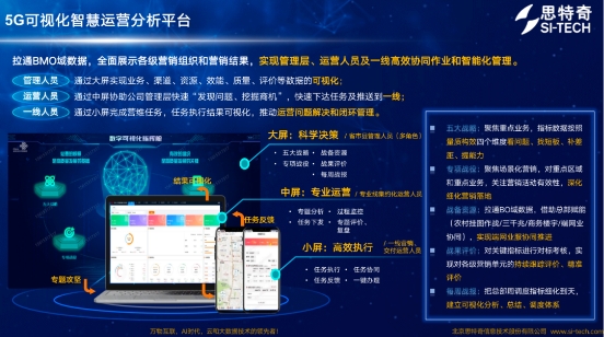 作為數(shù)智化轉(zhuǎn)型的使能者、賦能者、運營者,思特奇始終走在數(shù)智化探索前列,憑借豐富的5G營銷技術(shù)積累和商用經(jīng)驗,全力支撐運營商可視化精準營銷業(yè)務(wù)發(fā)展。經(jīng)過對全國各地省會城市的深度調(diào)研,思特奇研發(fā)設(shè)計出5G可視化智慧運營分析平臺,以實現(xiàn)數(shù)據(jù)運營可視、目標過程管控、一線環(huán)節(jié)觸達、評價量化標準為目標,聚焦業(yè)務(wù)問題,通過數(shù)據(jù)-問題-結(jié)果-反饋進行閉環(huán)分析復盤,加快運營商公司平臺型、數(shù)字化、智能化、生態(tài)化轉(zhuǎn)型。