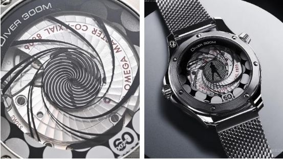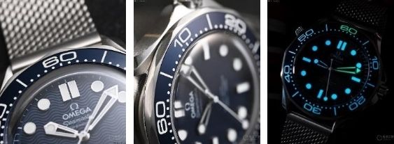 海馬300米“詹姆斯·邦德60周年紀(jì)念款”腕表的盤面,使用激光雕刻的波紋圖案,這一造型和上世紀(jì)90年代的早期海馬300米腕表保持一致,但取消了日歷。需要注意的是,新款腕表的秒針使用了“棒棒糖”秒針,其在歐米茄古董腕表中經(jīng)常出現(xiàn),是歐米茄復(fù)古風(fēng)格的一個(gè)特征。在售的海馬300腕表和2015年的《007:幽靈黨》中,詹姆斯·邦德佩戴的歐米茄海馬300腕表(注意:海馬300和海馬300米不是同一枚腕表)中同樣帶有罕見(jiàn)的“棒棒糖”秒針。
