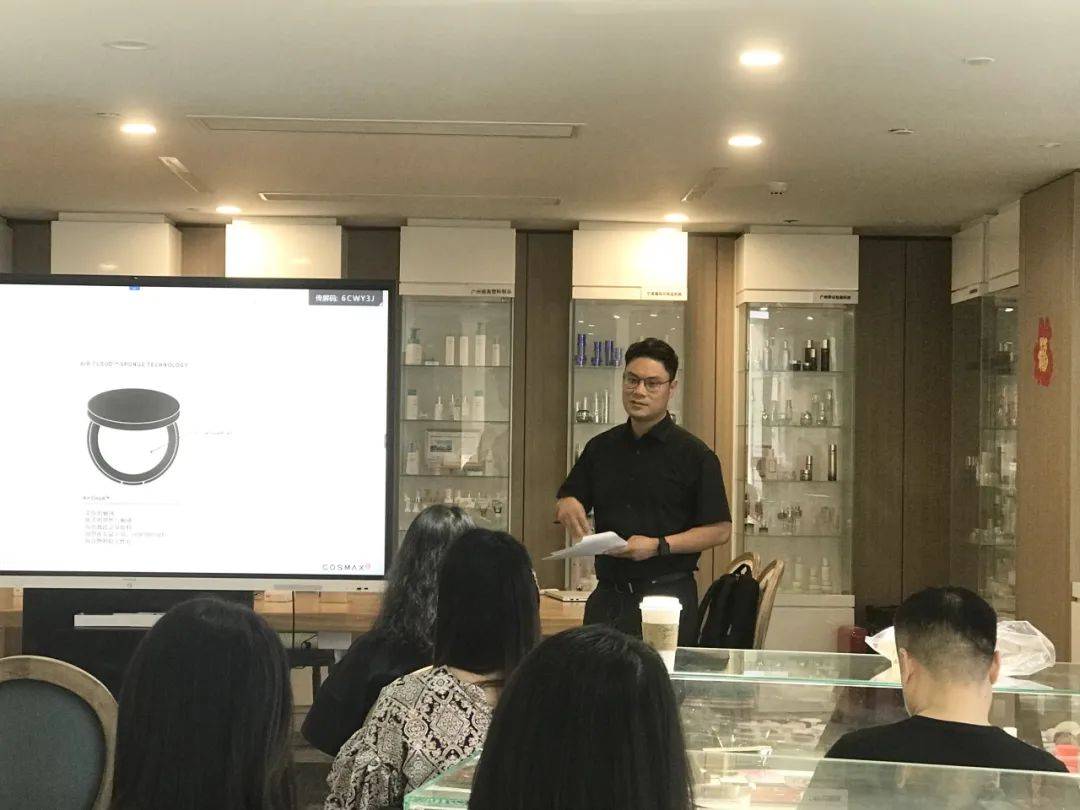科絲美詩廣州研究所金成勇所長在《氣墊底妝品類發(fā)展趨勢及創(chuàng)新》研討會上發(fā)言
