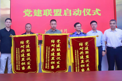 啟動儀式現(xiàn)場,青浦區(qū)朱家角鎮(zhèn)黨委委員王磊,中鐵上海工程局集團有限公司城建分公司黨委副書記、工會主席張文續(xù),上海申鐵投資有限公司項目經(jīng)理何喬石現(xiàn)場為各聯(lián)建單位授予“黨建聯(lián)盟促發(fā)展,結(jié)對共建顯擔(dān)當(dāng)”錦旗,并共同見證上海示范區(qū)線5標(biāo)項目部與各單位締結(jié)《黨建聯(lián)建協(xié)議書》。據(jù)了解,聯(lián)盟成立后,各聯(lián)建單位將相互交流黨建工作經(jīng)驗,共同開展黨建共建活動,通過推進區(qū)域化黨建,盤活黨組織力量資源,實現(xiàn)黨建與生產(chǎn)深度融合,以高質(zhì)量黨建引領(lǐng)高質(zhì)量發(fā)展。