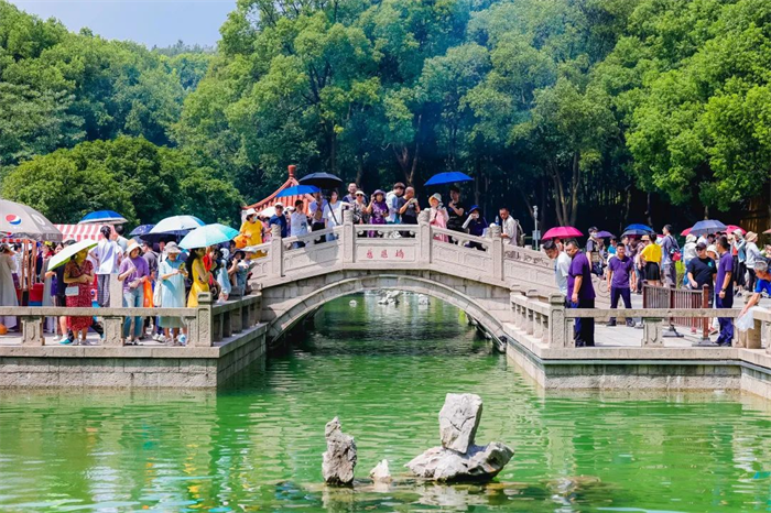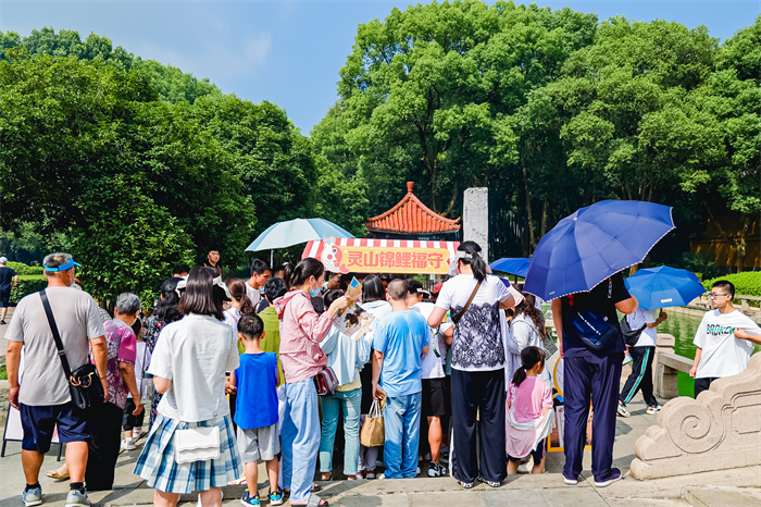 整場活動人頭攢動,現(xiàn)場一派熱鬧景象。錦鯉寄托著人們的美好祝福,在池內搖曳身姿,靈山勝境內從此又添一份生機、又添一處祈福之地。