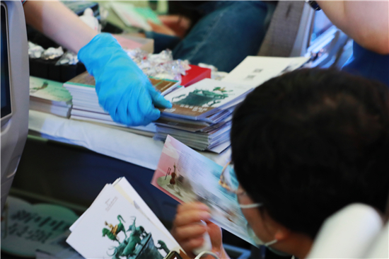 “云南被稱(chēng)為什么王國(guó)?”“云南省博物館里有一個(gè)文物有兩頭牛一只老虎,這件文物叫什么?”“央視《國(guó)家寶藏》中云南省博物館入選了三件文物,是哪三件呢?”旅客在與乘務(wù)員精彩互動(dòng)的過(guò)程中紛紛聊起了文物故事,翻看起文物畫(huà)冊(cè)。