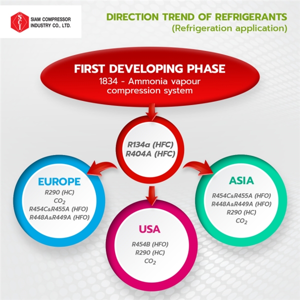 人工制冷始于 17世紀(jì)50 年代中期,1834 年第一個使用氨的工作蒸汽壓縮系統(tǒng)面世。另一方面,氨有毒且對健康有害。 直到今天,科學(xué)家們?nèi)栽诶^續(xù)開發(fā)和研究更好的制冷劑。 由于制冷劑在每個國家/地區(qū)的使用方式不同,為了提供清晰的解釋,我們將按國家/地區(qū)組對這些趨勢進(jìn)行細(xì)分。