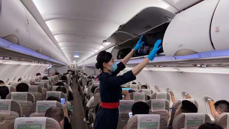 暑運(yùn)期間最大的特點就是客座率高,東航近期日均客座率都在80%左右;此外就是天氣復(fù)雜多變。相較于平日,在航前準(zhǔn)備過程中,金智音和乘務(wù)組們近期會格外關(guān)注目的地天氣情況、客座率、旅客構(gòu)成,特別是行李托運(yùn)情況等?!翱妥噬蟻砹?#xff0c;上機(jī)的行李自然就多了。為了妥善放置旅客的行李,我們一方面會提前在保障群里同地面緊密溝通監(jiān)控行李數(shù)量,一方面也會在航前準(zhǔn)備會上對乘務(wù)員們擺放行李提前進(jìn)行詳細(xì)部署?!苯鹬且粢矔跈C(jī)艙門口細(xì)心觀察,當(dāng)看到旅客行李箱較多,她還會以機(jī)上廣播的方式做好提醒,建議并幫助旅客將小型背包放置在座椅擋桿下方,確保每件行李都能放置妥善。