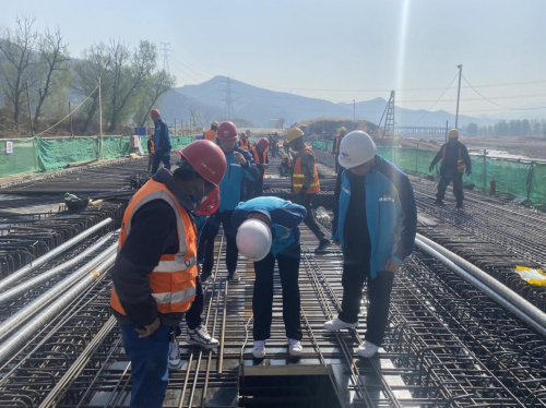 在濱河北路鐵路下穿段施工現(xiàn)場中,工程建筑者們堅守工作崗位,克服工程障礙,精心組織施工計劃,以多點聯(lián)動方式快速推進(jìn)項目建設(shè),加班加點抓工期、趕進(jìn)度,有的綁扎鋼筋籠,有的正在進(jìn)行鋼筋籠焊接,一派繁忙的施工景象。