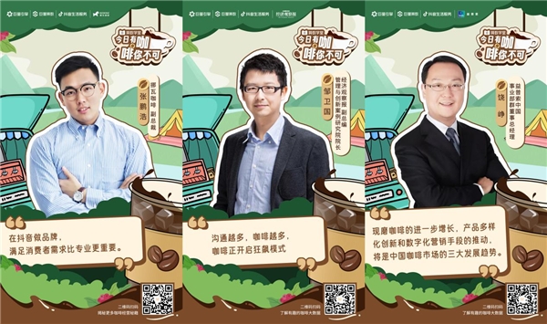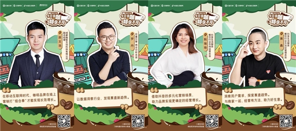 為此《算數(shù)學堂》重磅推出《今日有咖·啡你不可》欄目,聚焦咖啡賽道,為品牌商家們指點迷津,并邀請了8位重磅嘉賓,專業(yè)覆蓋咖啡生態(tài)各個環(huán)節(jié),包括消費行業(yè)專家2位、咖啡品牌商家代表2家、品牌代理服務商1家、抖音生活服務專家2位、巨量引擎商業(yè)分析1位,他們將分別從各自的領域出發(fā),分享有關咖啡行業(yè)未來趨勢、品牌經(jīng)營方法論、抖音平臺數(shù)字化營銷秘籍等真知灼見。