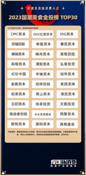 《2023國(guó)潮美食金投榜·TOP30》則用來表彰資本作為新消費(fèi)潮流興起的預(yù)見者、助推器與價(jià)值捕手,在企業(yè)發(fā)展的道路上所發(fā)揮的舉足輕重的作用。
