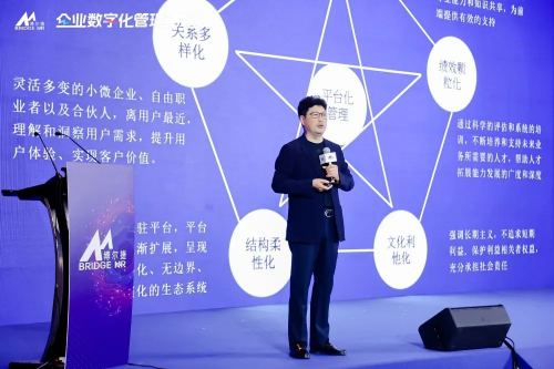 侯博士以2019年與中歐國際工商學院的忻榕教授、阿里巴巴產(chǎn)業(yè)互聯(lián)網(wǎng)中心主任陳威如教授歷經(jīng)兩年共同創(chuàng)作的《平臺化管理》一書作為理論指導,以及多年人力資源行業(yè)經(jīng)驗的沉淀和敏銳的市場洞察,總結(jié)構(gòu)建平臺化企業(yè)的重要性,包括小前端、強中臺和穩(wěn)后臺的建設(shè)。侯博士介紹了平臺化管理的五化模型:能力數(shù)字化、關(guān)系數(shù)字化、績效顆?;?、結(jié)構(gòu)柔性化、以及文化利他化。侯博士分享了博爾捷集團的成功經(jīng)驗,鼓勵其他企業(yè)在探索和實踐中進行數(shù)字化轉(zhuǎn)型和組織變革,以實現(xiàn)平臺化管理。