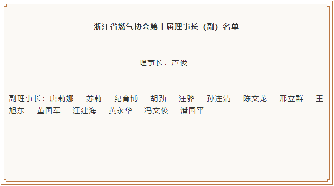 浙江省燃?xì)鈪f(xié)會第十屆常務(wù)理事單位名單