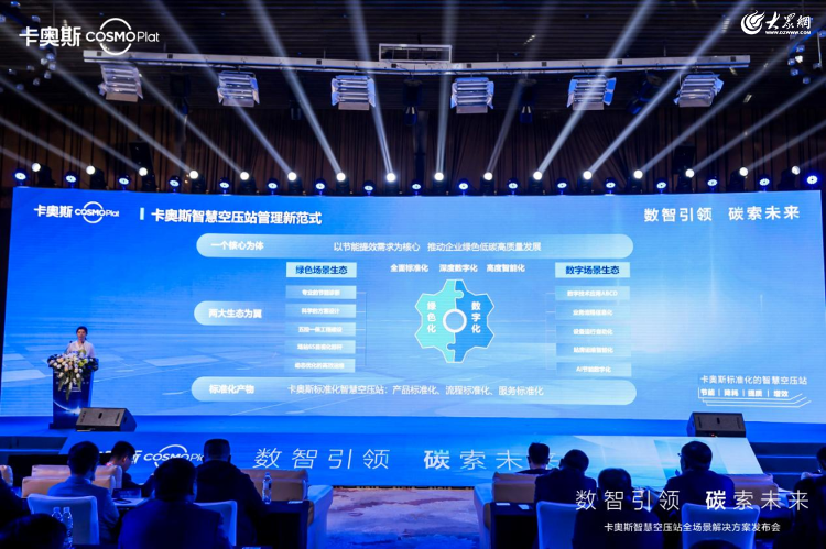 本屆大會以“數(shù)智引領(lǐng) 碳索未來”為主題,聚焦工業(yè)領(lǐng)域空壓站場景的數(shù)字化、綠色化轉(zhuǎn)型升級,發(fā)布行業(yè)數(shù)字化解決方案,探討數(shù)字化、綠色化“雙化協(xié)同”下,行業(yè)未來發(fā)展趨勢??▕W斯COSMOPlat智慧空壓站全場景解決方案及空壓站智控云平臺的發(fā)布,為數(shù)字孿生、區(qū)塊鏈、工業(yè)互聯(lián)網(wǎng)等新技術(shù)落地提供了典型應(yīng)用場景。