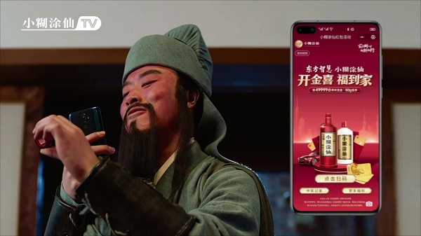 活動以開蓋掃碼抽獎為主要形式,消費者購買小糊涂仙指定酒品,開蓋掃碼即可抽取49999元購車基金、50g虎年傳世金條、2g足金金條及海量微信現(xiàn)金紅包等。“開金喜 福到家”活動在線下掃碼開獎,回饋消費者的同時,小糊涂仙于雙微平臺推出social短片《酒煮三國》,以三國時代為背景,結(jié)合產(chǎn)品人群與活動賣點,巧妙地將“開金喜 福到家”活動的核心內(nèi)容傳遞給消費者,用古風(fēng)爆梗玩出活動新花樣,從滿屏的春節(jié)營銷熱潮中突圍。