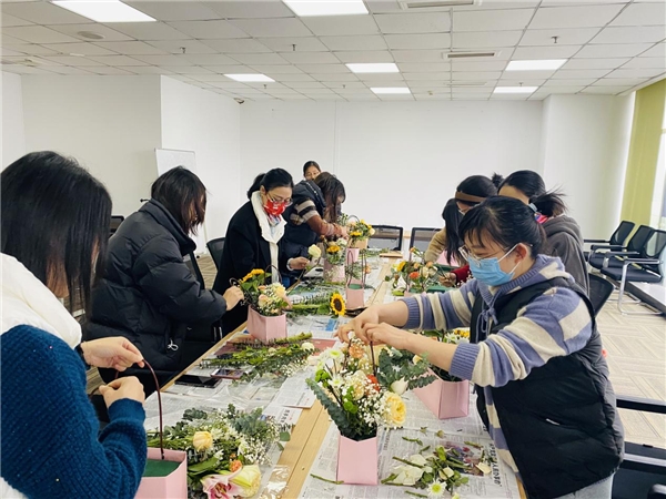 國際三八婦女節(jié)來臨之際,為豐富園區(qū)婦女企業(yè)員工的業(yè)余生活、陶冶情操,3月7日上午,火炬孵化博濟錢江匯谷運營服務中心聯(lián)合物聯(lián)網指揮部企服辦在7樓會議室開展了一場“魅力處處綻放美麗處處綻放”三八節(jié)插花花藝園企互動。共計12位員工在此體驗插花藝術,感受插花藝術帶來的精神享受。