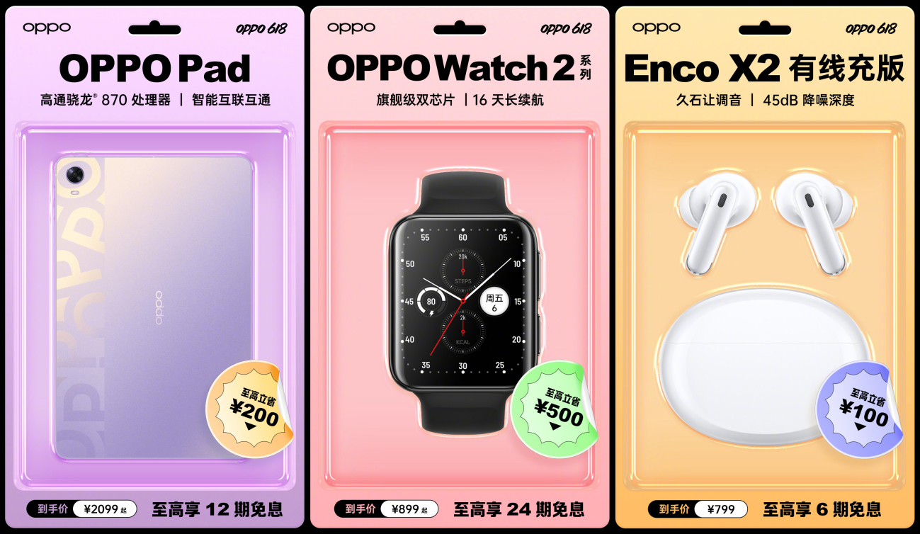 除了以上各款智能手機以外,OPPO豐富的IoT產品也擁有不同程度的優(yōu)惠,搭載驍龍870處理器的OPPO Pad平板電腦至高立省200,到手價僅2099元起;OPPO Watch 2系列至高立省500,到手價899元起,還可享24期免息;真無線藍牙耳機OPPO Enco Air2 Pro至高立省50元,僅需249即可入手。