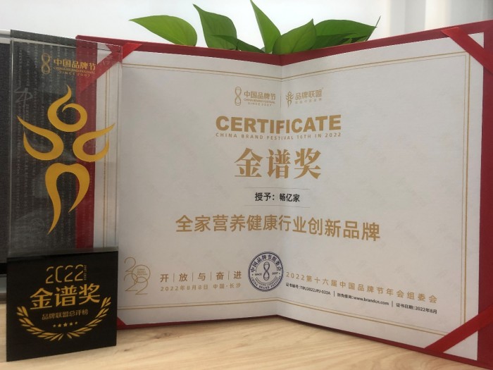 8月8日至9日,2022第十六屆中國品牌節(jié)年會在長沙盛大召開,“2022中國品牌金譜獎”評選隨之新鮮出爐,暢億家榮獲“金譜獎·全家營養(yǎng)健康行業(yè)創(chuàng)新品牌”,成為今年獨一上榜“金譜獎”的大健康創(chuàng)新品牌。金譜獎通過品牌行業(yè)地位、品牌購買力、品牌活躍度、消費者影響力、品牌社會責(zé)任感等多項指數(shù)的綜合評選,評選行業(yè)年度表現(xiàn)最佳的品牌,每年評選1次。每行業(yè)入圍30強(qiáng),最后決出品牌中國金譜獎榮譽(yù)。