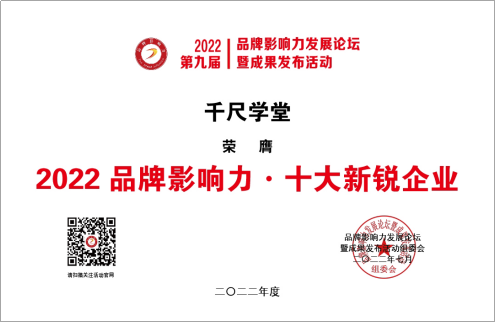近日,由《發(fā)現(xiàn)品牌》欄目組、對外經(jīng)濟(jì)貿(mào)易大學(xué)中國國際品牌戰(zhàn)略研究中心、《中國企業(yè)報》集團(tuán)主辦的2022品牌影響力發(fā)展論壇暨成果發(fā)布活動正式舉辦?;顒右浴按罅Πl(fā)展品牌戰(zhàn)略促進(jìn)經(jīng)濟(jì)高質(zhì)量發(fā)展”為主題。圍繞中國品牌創(chuàng)建行動,培育新型消費(fèi),實(shí)施領(lǐng)航企業(yè)培育工程,促進(jìn)專精特新小巨人企業(yè)培育等內(nèi)容展開分析探討。在著重推介具有優(yōu)秀成長性或影響力的品牌環(huán)節(jié)中,千尺學(xué)堂榮膺“2022品牌影響力·十大新銳企業(yè)”、“2022品牌影響力·踐行社會責(zé)任十大典范”兩項大獎。