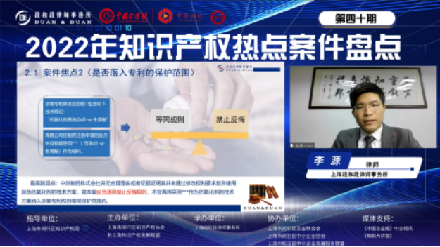 本期《知新大講堂》邀請(qǐng)到三位深耕知識(shí)產(chǎn)權(quán)行業(yè)多年的上海段和段律師事務(wù)所律師高璀璀、李源和丁浩,為大家進(jìn)行2022年知識(shí)產(chǎn)權(quán)熱點(diǎn)案件的盤點(diǎn)剖析,希望借此機(jī)會(huì)回顧過去一年間知識(shí)產(chǎn)權(quán)界發(fā)生的熱議標(biāo)志性知識(shí)產(chǎn)權(quán)案例,與各位知識(shí)產(chǎn)權(quán)行業(yè)人員及觀眾一起深入思考。