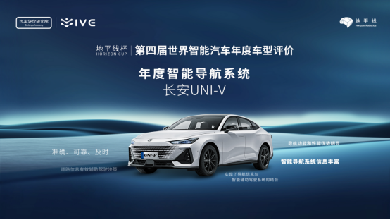長安UNI-V榮獲“地平線杯”第四屆世界智能汽車年度智能導(dǎo)航系統(tǒng)榮譽稱號。