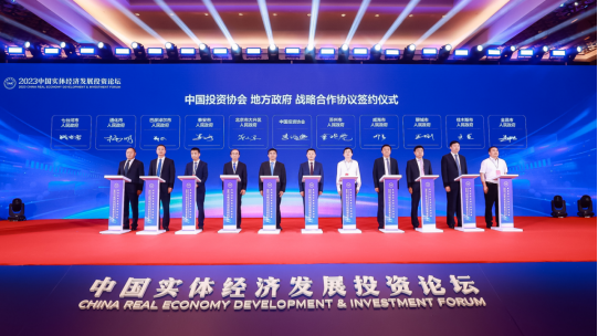 在簽約儀式環(huán)節(jié),中國投資協(xié)會和11個地方政府、10家上市公司及行業(yè)協(xié)會、10家金融機(jī)構(gòu)、10家項目合作單位簽署了戰(zhàn)略合作協(xié)議。