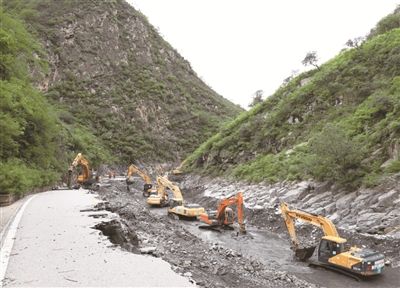 8月5日16時,隨著北京建工機(jī)施集團(tuán)副總經(jīng)理劉海龍趕到史家營鄉(xiāng)政府向鄉(xiāng)長匯報搶險結(jié)果,標(biāo)志著經(jīng)過30小時鏖戰(zhàn),北京建工機(jī)施集團(tuán)全面打通了賈金路賈峪口至史家營鄉(xiāng)18公里交通生命線。