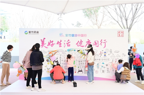 現(xiàn)場(chǎng)還設(shè)置了“涂鴉墻”和健康合影板,吸引了眾多參觀者打卡互動(dòng)。大家共同繪制的“涂鴉墻”上,留下了對(duì)親友及自己的健康祝福,而創(chuàng)意十足的健康合影板,記錄下諸多的歡樂(lè)瞬間……