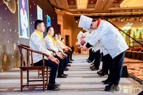 麥金地是一家先建立文化體系再建立管理體系的公司,以尊師重道、廚藝傳承傳承為宗旨創(chuàng)立“廚藝促進(jìn)會(huì)”,以“仁義禮智信”儒家文化為底蘊(yùn)組建【麥金地精忠俱樂(lè)部】管理團(tuán)隊(duì),是麥金地集團(tuán)一貫堅(jiān)持的管理措施。會(huì)議第一章,舉行了廚藝促進(jìn)會(huì)拜師儀式和精忠俱樂(lè)部入會(huì)儀式。