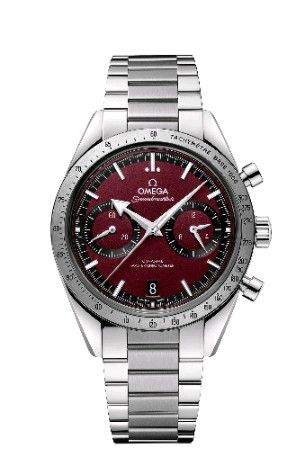 歐米茄超霸系列腕表最初為賽車設(shè)計,后來因其卓越的性能成為陪伴人類完成登月任務(wù)的首枚腕表。同時,超霸腕表也是地球冒險家的青睞裝備。這款超霸’57腕表采用勃艮第紅色表盤,金屬表圈飾有激光鐫刻的黑色測速刻度。鍍銠小時刻度和”闊箭”指針均覆有白色Super-LumiNova夜光涂層。腕表內(nèi)部搭載歐米茄9906至臻天文臺機(jī)芯。