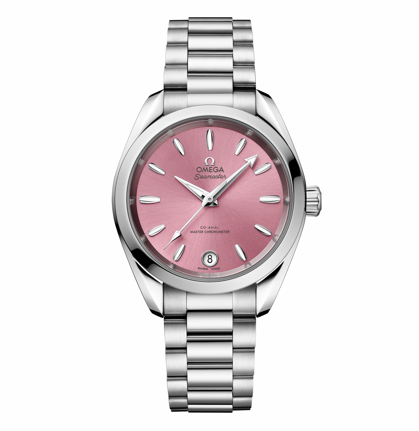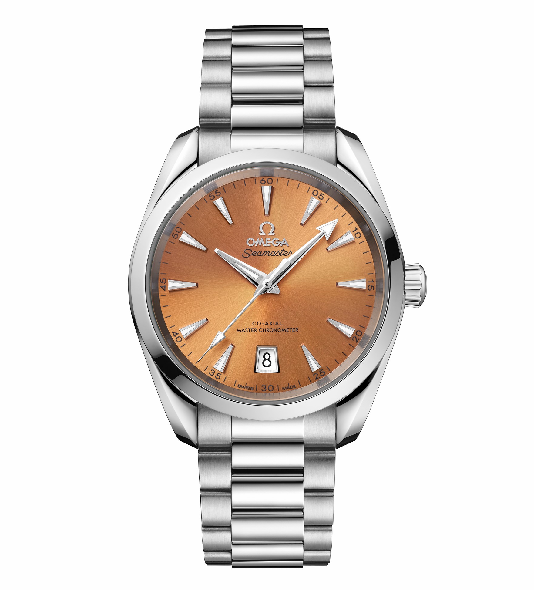 對于表迷來說,此次新出的 Aqua Terra Shades 腕表有34毫米和38毫米兩種尺寸可供選擇,對應了男女的不同需求。最為引人矚目的還是靈感來自海洋和陸地的彩色表盤,如38毫米表款的盤面有深藍色、月桂綠色、砂巖色、橘黃色和赤陶色;34毫米表款則有海藍色、湖綠色、砂巖色、貝殼粉色和薰衣草紫色表盤可選,不同的色彩表現出佩戴著不同的個性與風格。
